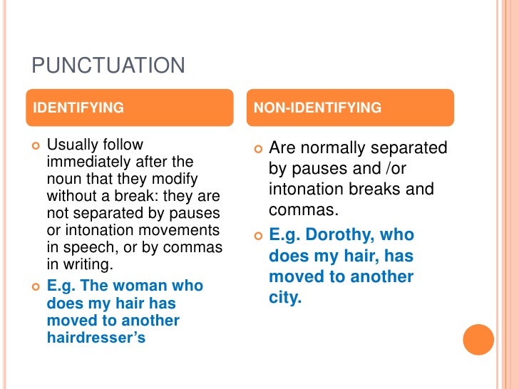 Defining And Non Defining Relative Clauses English Language Learners Stack Exchange from i.stack.imgur.com The relative pronoun can never be omitted. Imagine, tom is in a room with only one girl. This example contains information about the noun the river nile. Read the explanation to learn more. The relative clause is closed off by commas and is quite similar to information in brackets. We use those to give extra information, which isn't absolutely necessary. We use commas to separate them from the rest of the sentence, unless they come at the end of the sentence, when we use a comma and a full stop. Some types of relative clauses can be "reduced"— the relative pronoun and maybe other words can be removed.